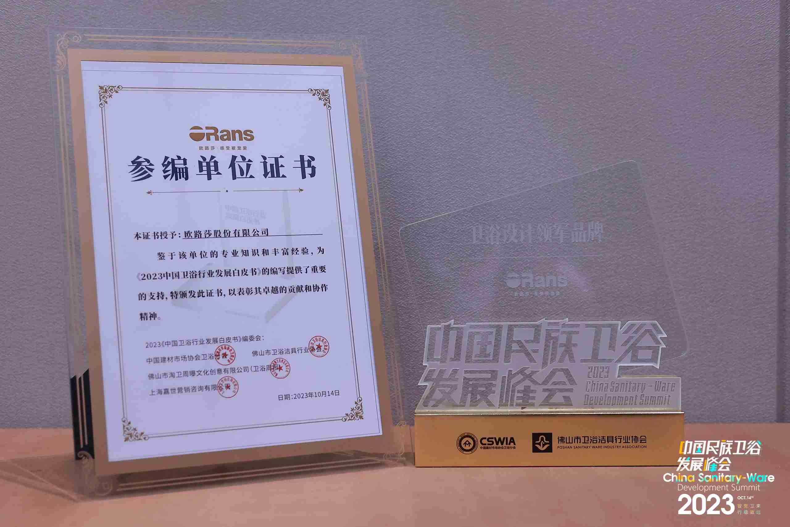 與此同時(shí),歐路莎不光關(guān)注自身發(fā)展,還積極參與推動(dòng)國內(nèi)衛(wèi)浴行業(yè)的發(fā)展。歐路莎衛(wèi)浴為編寫《2023 中國衛(wèi)浴行業(yè)發(fā)展白皮書》提供了重要支持,并獲得了“參編單位證書”。這一舉措不僅體現(xiàn)了歐路莎衛(wèi)浴的專業(yè)實(shí)力,更是對國貨品牌的責(zé)任擔(dān)當(dāng)?shù)目隙ā?/span>