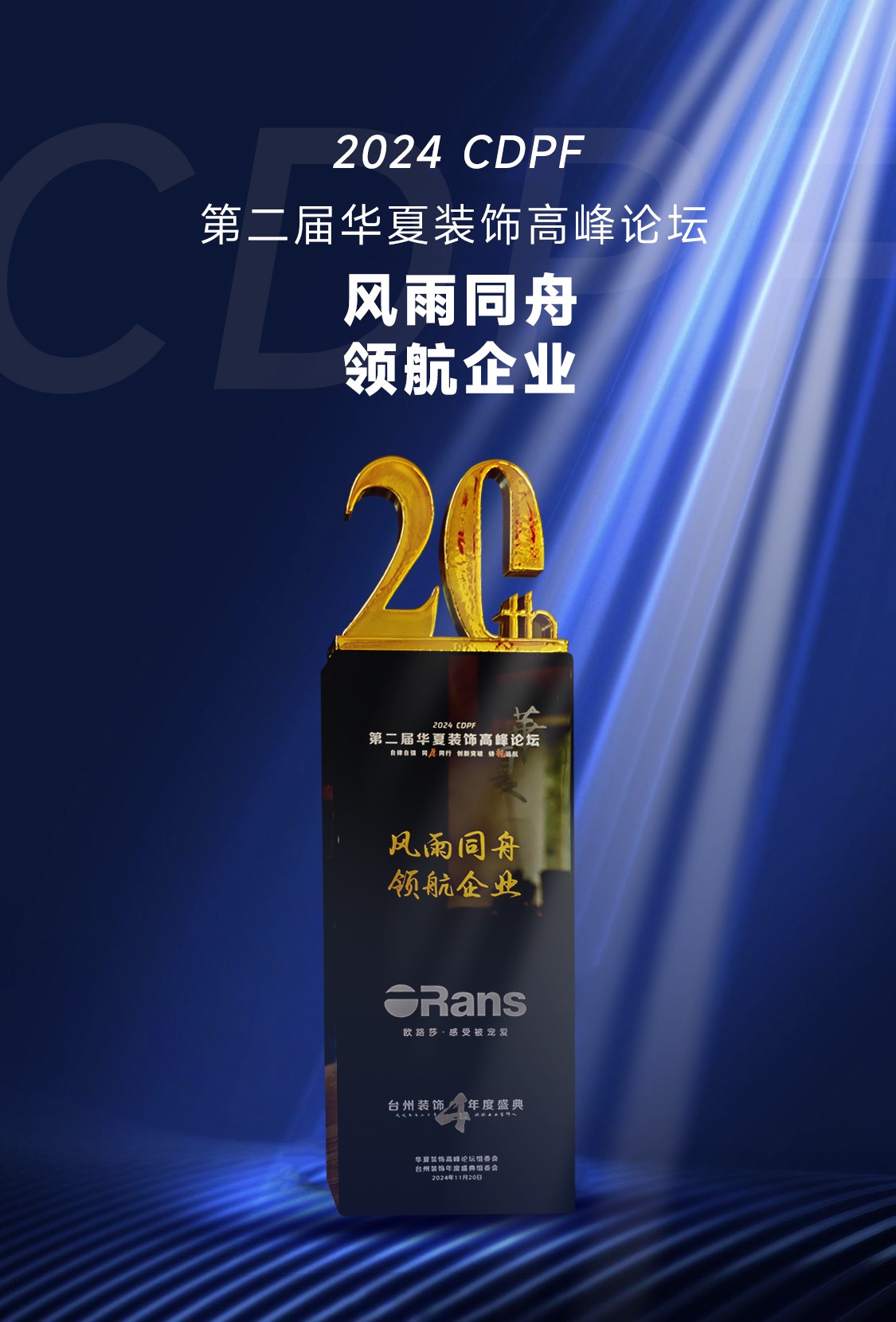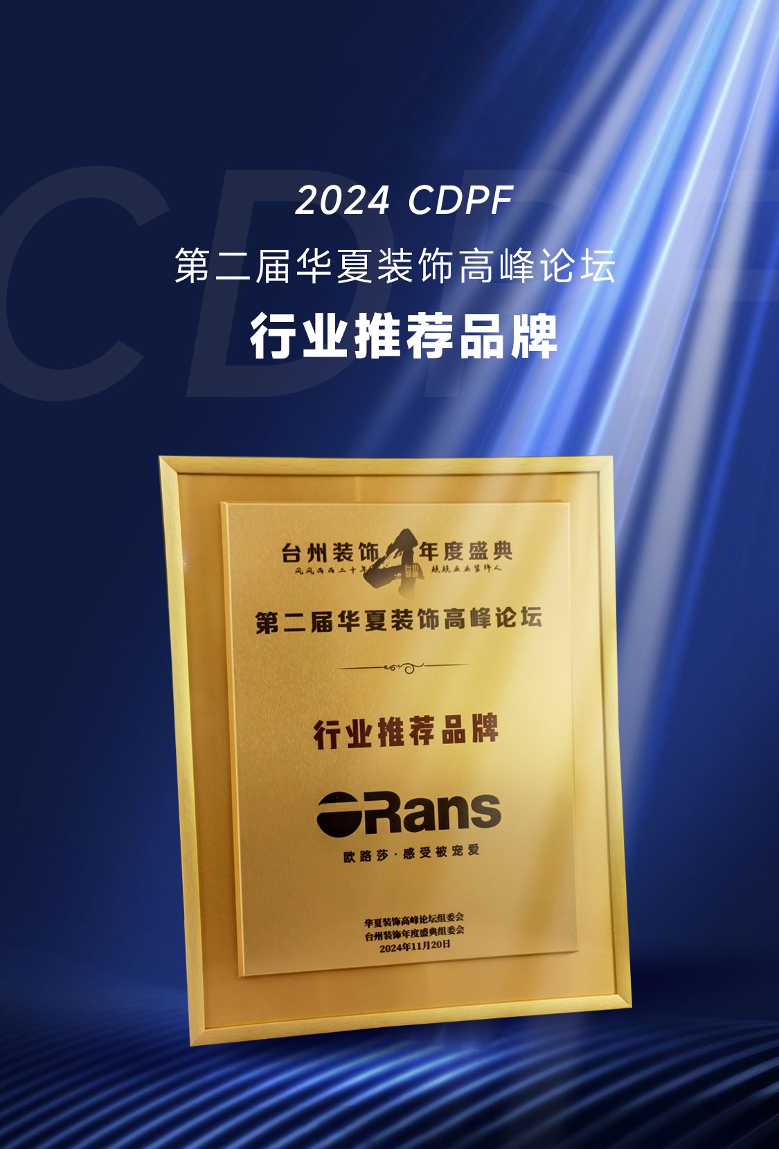 11月20日,2024·CDPF 第二屆華夏裝飾高峰論壇暨第四屆臺(tái)州裝飾協(xié)會(huì)年度盛典在浙江臺(tái)州白天鵝酒店隆重舉辦。歐路莎衛(wèi)浴作為輪值會(huì)長(zhǎng)及協(xié)辦單位,董事長(zhǎng)林華友應(yīng)邀出席并作為論壇嘉賓參與重要議題研討。