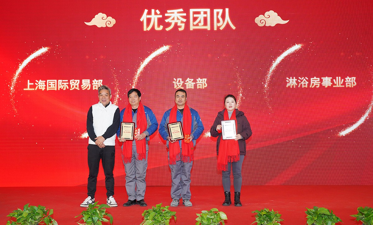 歐路莎衛浴董事長林華友、總經理王俊華、營銷中心總經理吳世權等公司高管及2024年度優秀團隊和個人齊聚一堂,與歐路莎全體員工同唱司歌,共赴2025。