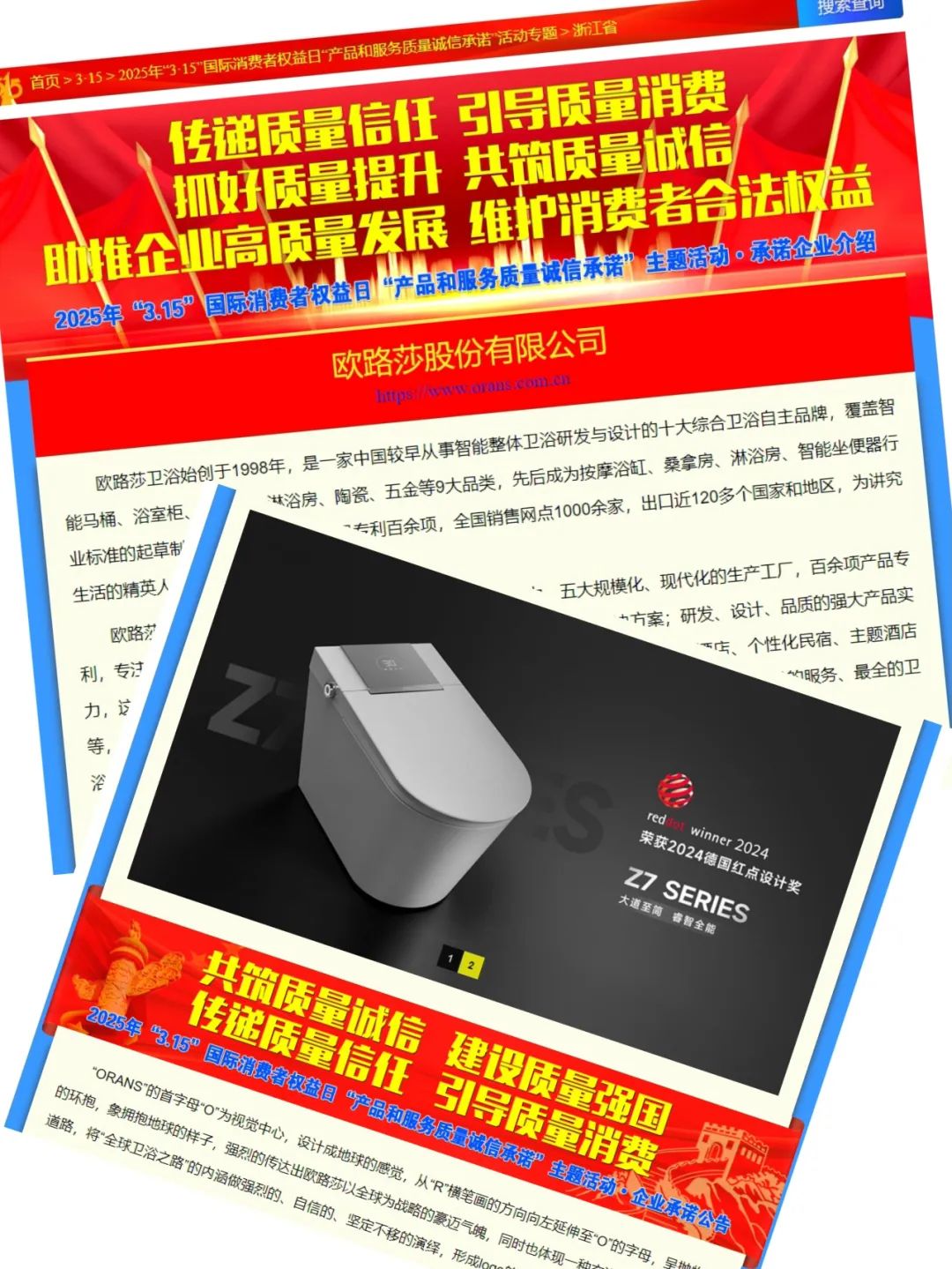 品質315丨 歐路莎衛浴榮獲四大質量獎項