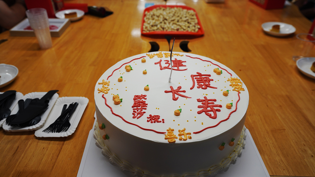 活動(dòng)室里,老人們像孩童般坐姿端正,笑容燦爛,眼神里洋溢著期待。歐路莎志愿者們端來滿是祝福的生日蛋糕,為壽星們戴上生日禮帽,輕聲說:“叔叔阿姨,今天您最大!”遞蛋糕時(shí),年近80歲的王阿婆攥著志愿者的手感慨:“謝謝你們記掛著我的生日啊,謝謝歐路莎的禮物”