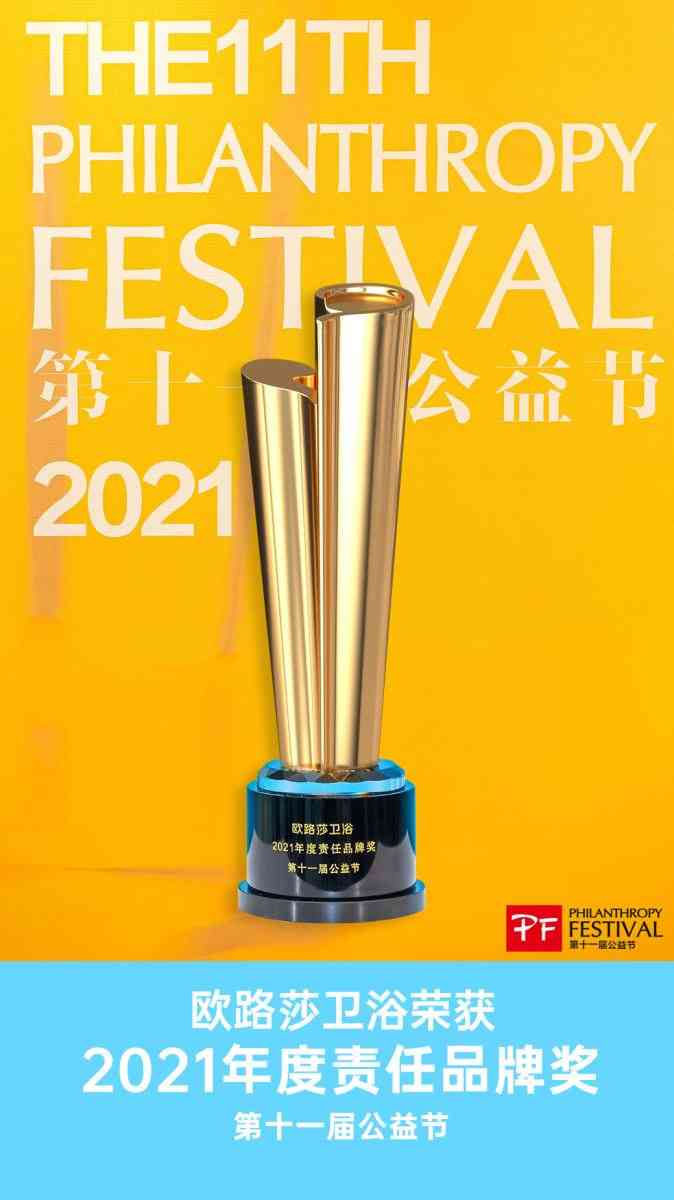 頒獎盛典上,歐路莎衛浴憑借在社會公益領域的出色實踐與貢獻,被中國公益節組委會授予「2021年度責任品牌獎」稱號。