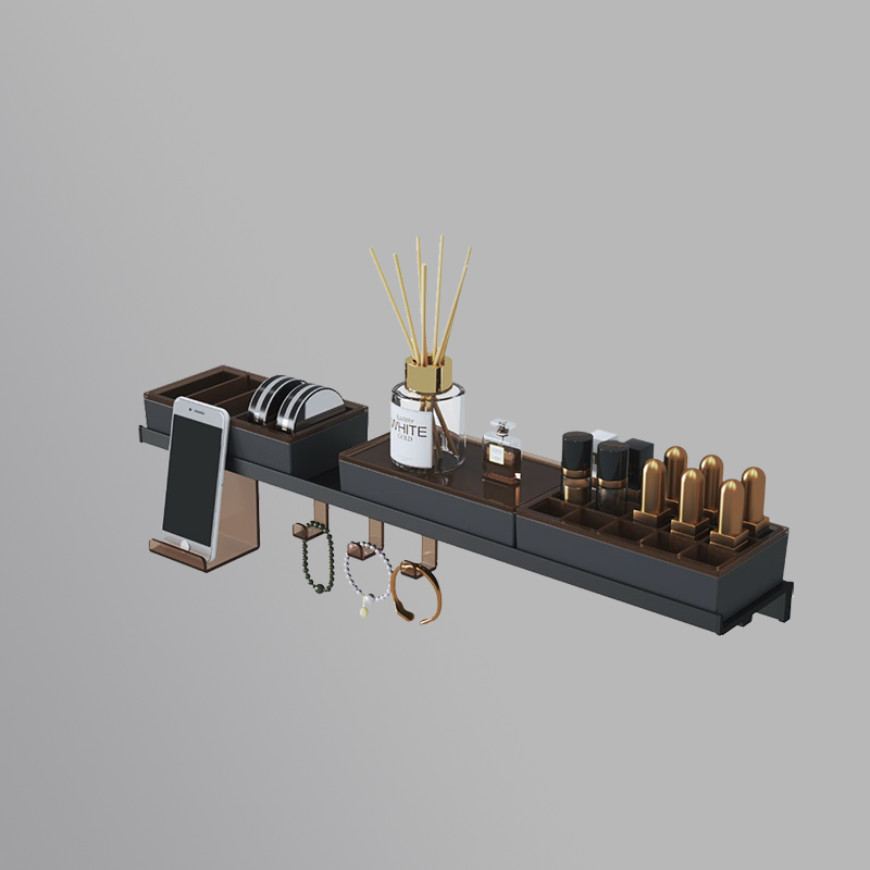 超強鏡柜收納,結合新型集成式置物架,時尚簡潔,專區專用,平推式自由移動,便捷式安裝,收納有序
