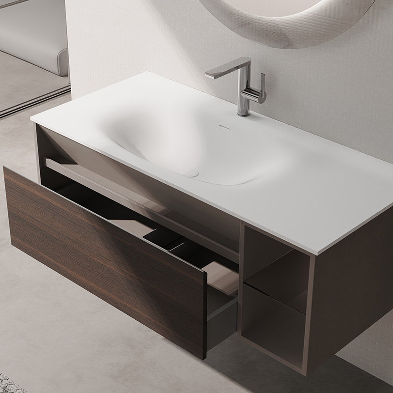 奇美石一體臺,盆溫潤觸感,易潔不掛污,多功能分區儲物, 收納更有序