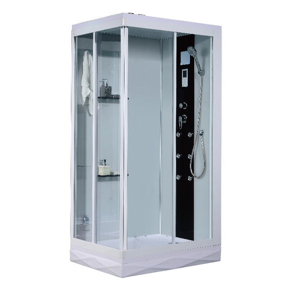 電腦面板控制、七彩背燈、頂噴、背噴、花灑、收音機(jī)、風(fēng)扇、掛鉤、五金龍頭、置物架