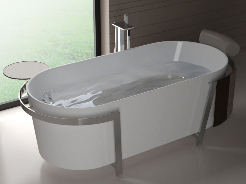 橢圓形缸體由對稱設計的不銹鋼支架穩穩托起,同時與地面保留適當間距,超強空間層次感與金屬襯托藝術感升級。