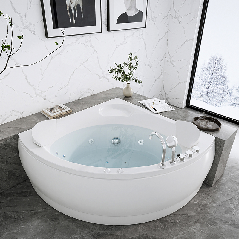 充分利用空間,三角圓弧造型,時尚大方,內(nèi)部空間最大化,深度儲水,沖浪型大小噴嘴出水,自帶空氣調(diào)節(jié)閥在家即享SPA般沐浴體驗。