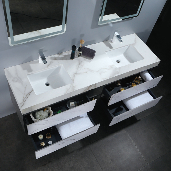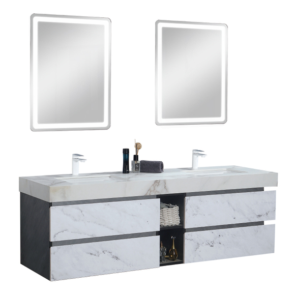 材質:臺面巖板/柜體實木多層板/觸摸式LED無影柔光鏡