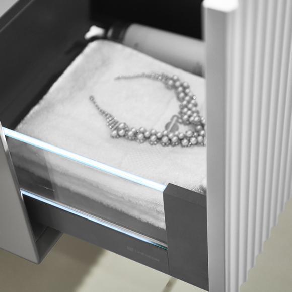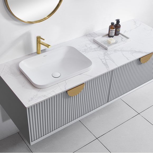 波紋線條元素給衛浴空間增添了幾分靈動,與鎏金圓弧拉手巧妙搭配,盡顯優雅時尚。