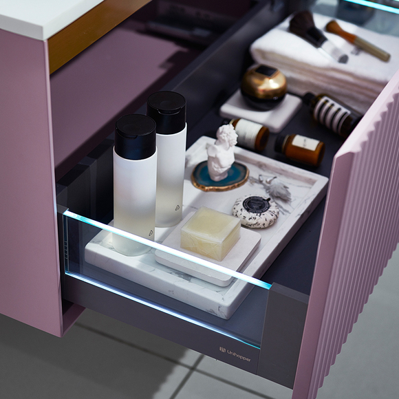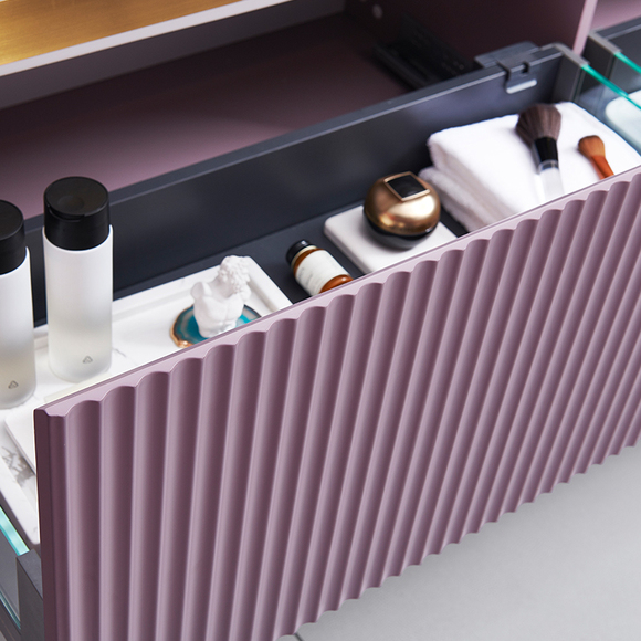 雙抽搭配、分區(qū)收納,嵌入式LED燈帶,光線柔和,溫馨浪漫,輕松照亮。