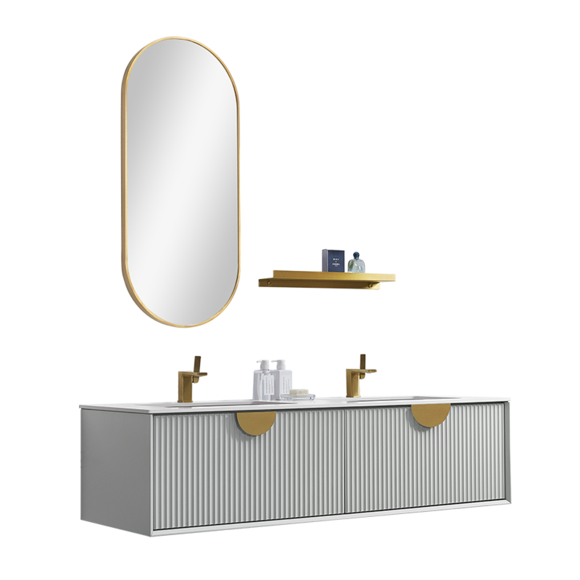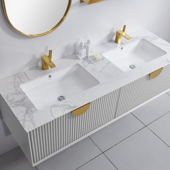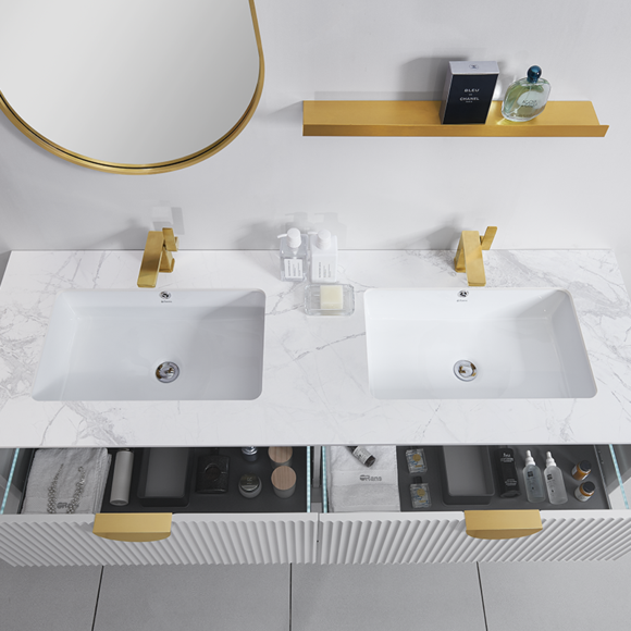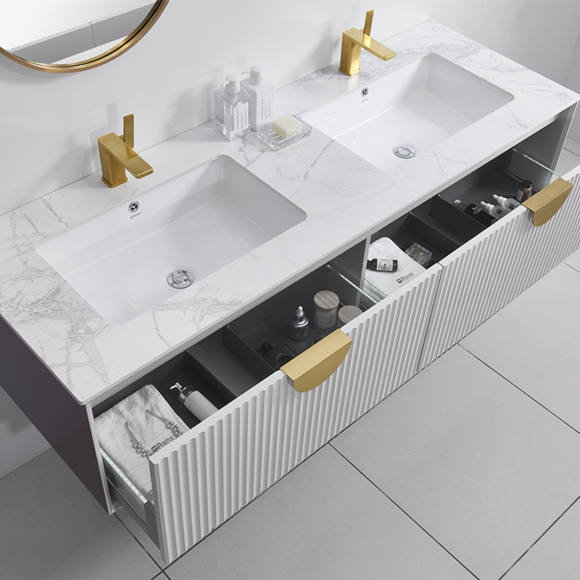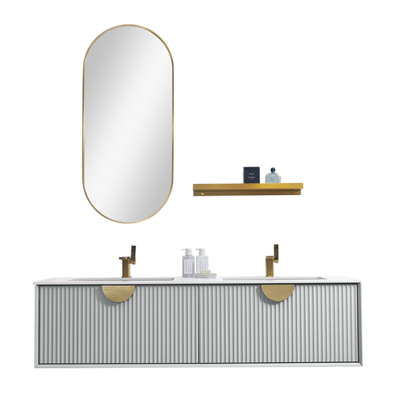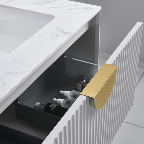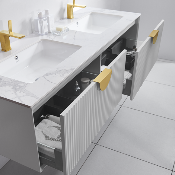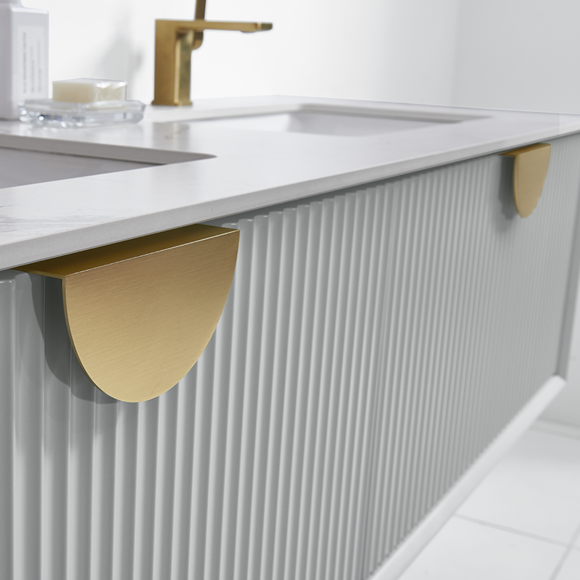 波紋線條元素給衛浴空間增添了幾分靈動,與鎏金圓弧拉手巧妙搭配,盡顯優雅時尚。