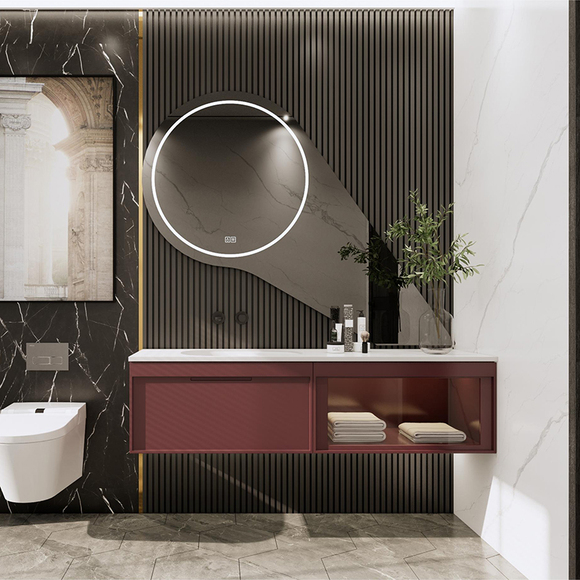 極簡造型 盡顯品質 極窄邊框抽面設計,隱藏式拉手,茶色玻璃抽面,膚感全啞烤漆,LED燈帶盡顯高級。
